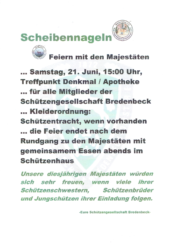 Scheibennageln 2025 21.06.2025 | ArchivLiebe Mitglieder, die Majestäten geben sich die Ehre... Zurück